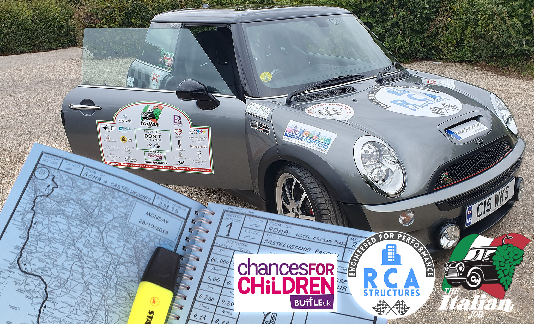 The countdown is on! Our sponsored Mini is now proudly carrying the RCA roundel and is all set for the start line of the Italian Job 2025 Challenge on 7th October.